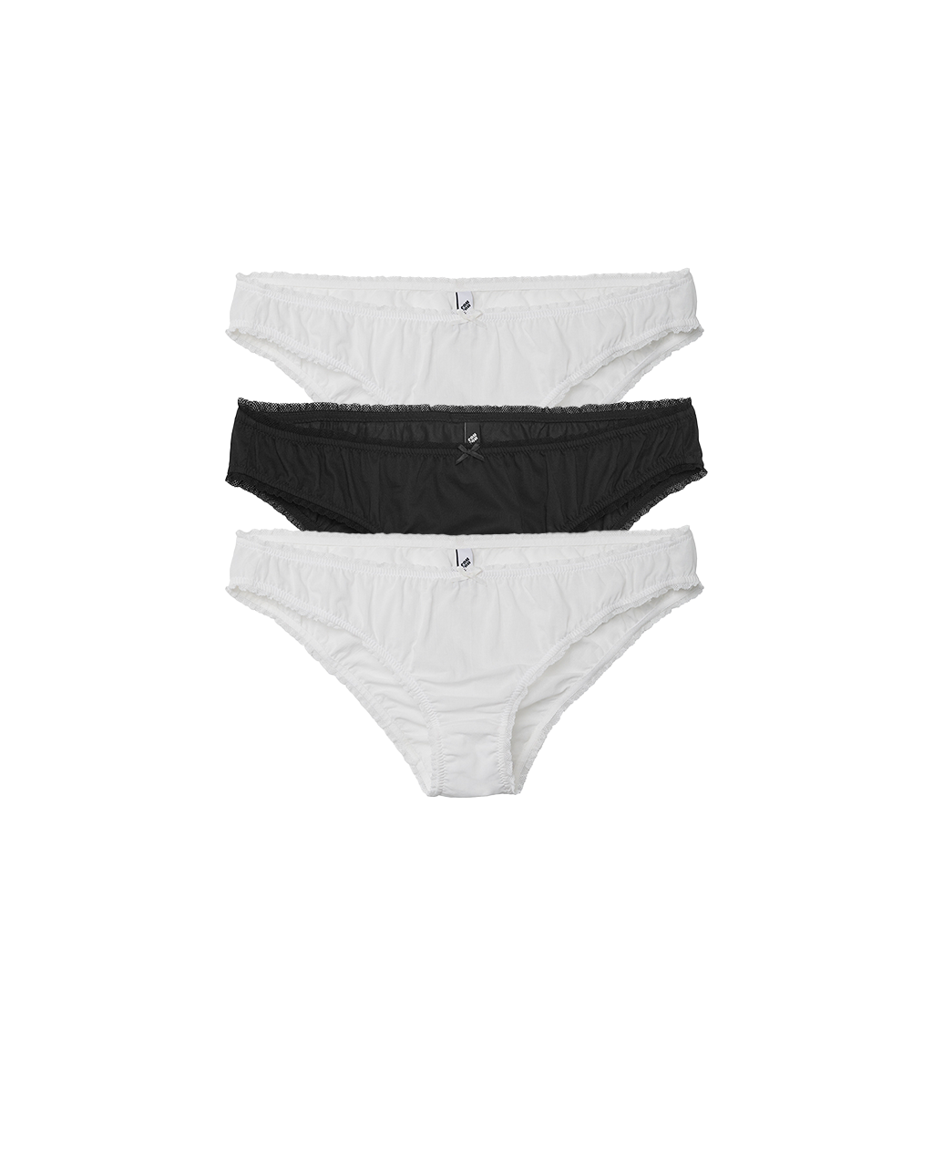 All the frills. Soft & dreamy, our cotton-voile brief is made for everyday comfort and cuteness. Made with our super-soft 100% Organic Cotton & French Lace. Choose three pairs between the Cotton Voile White and Black.