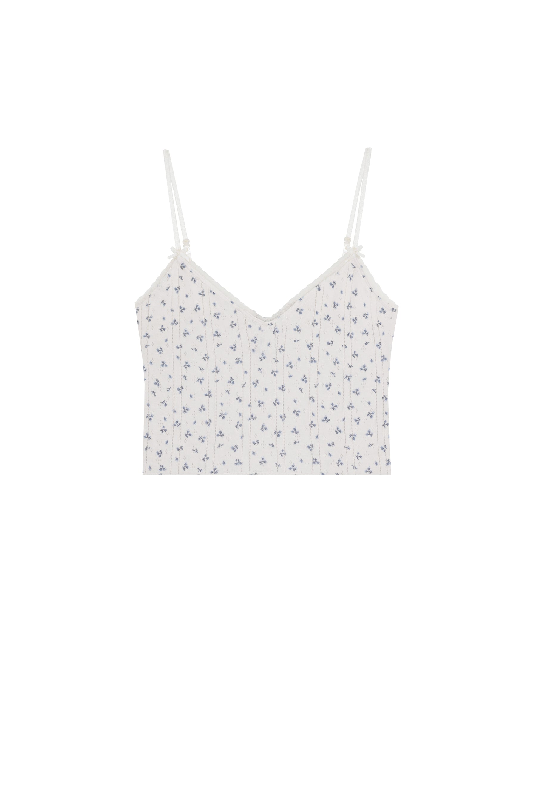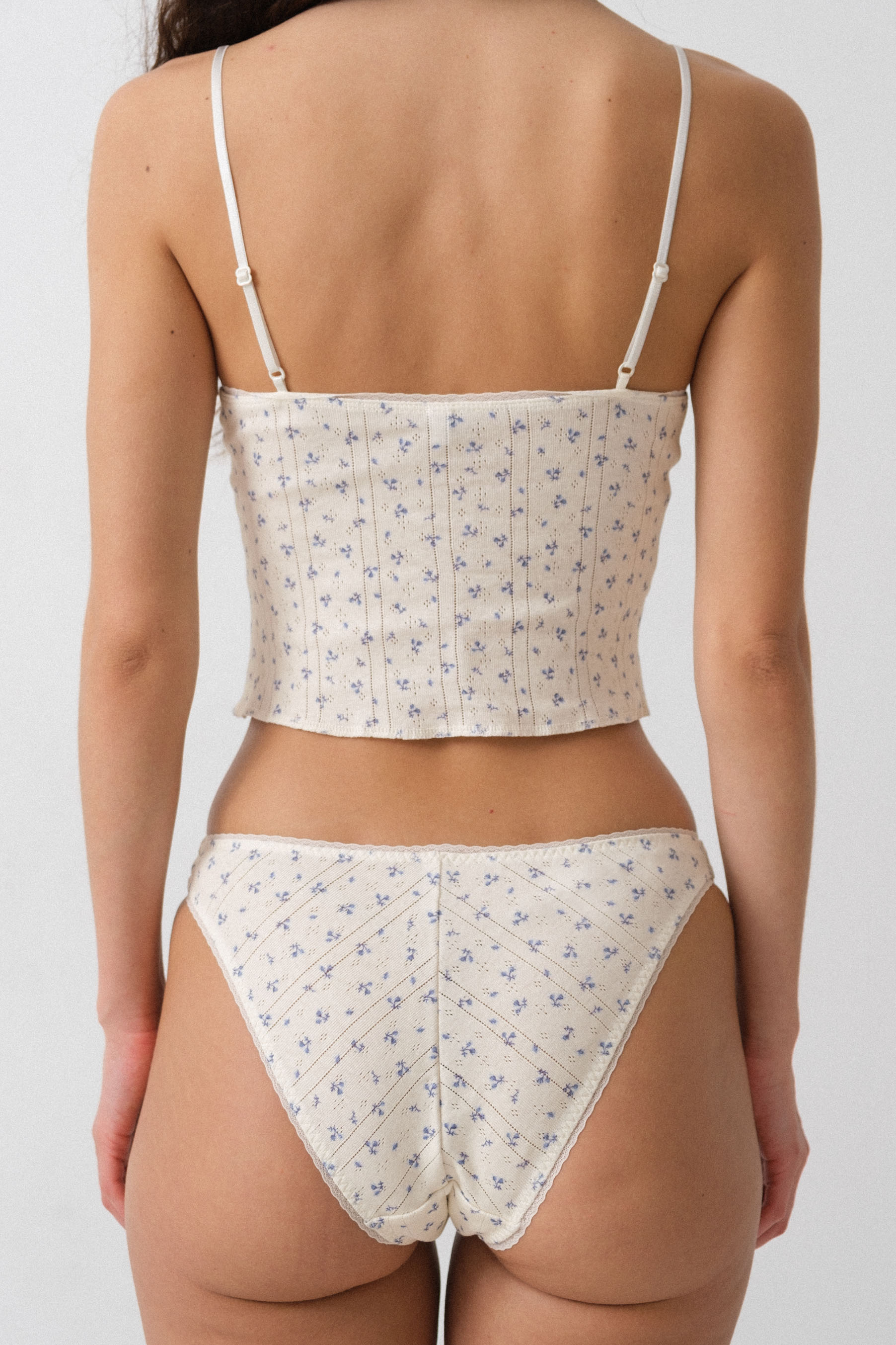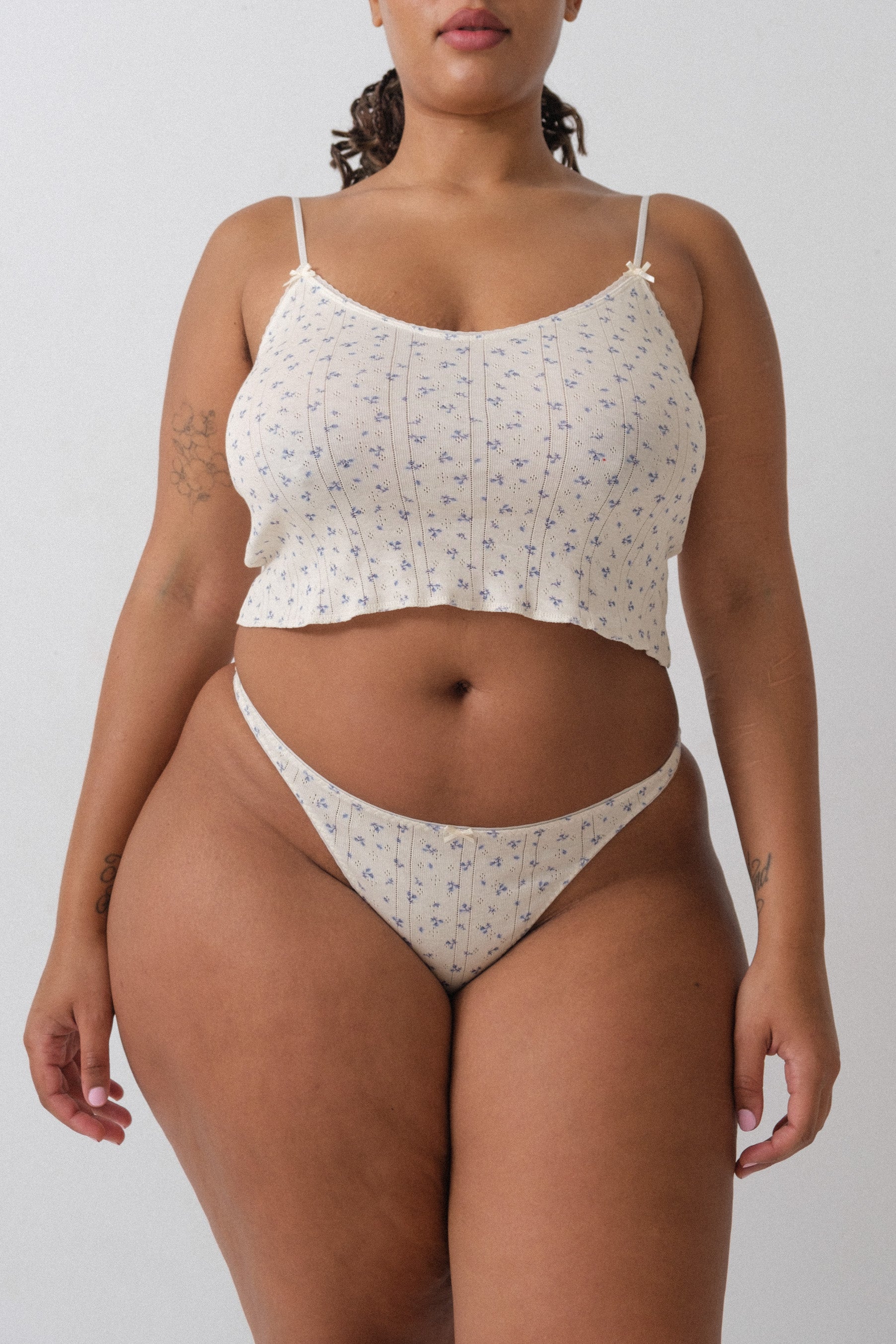 Our signature crop cami in Blue Fields. Cut to recall your favourite bralette, The Cami provides just the right amount of coverage for everyday wear.