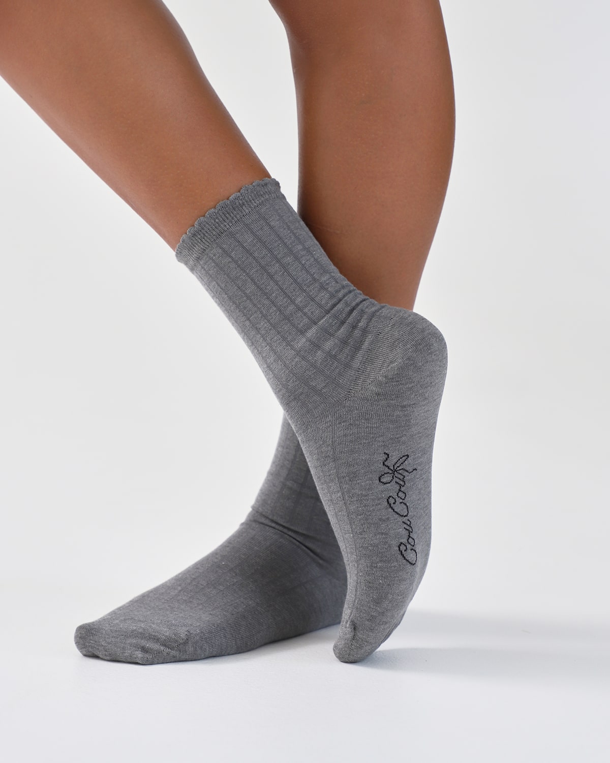 The Everyday Sock with baby rib detailing and a flirty, scallop edge.