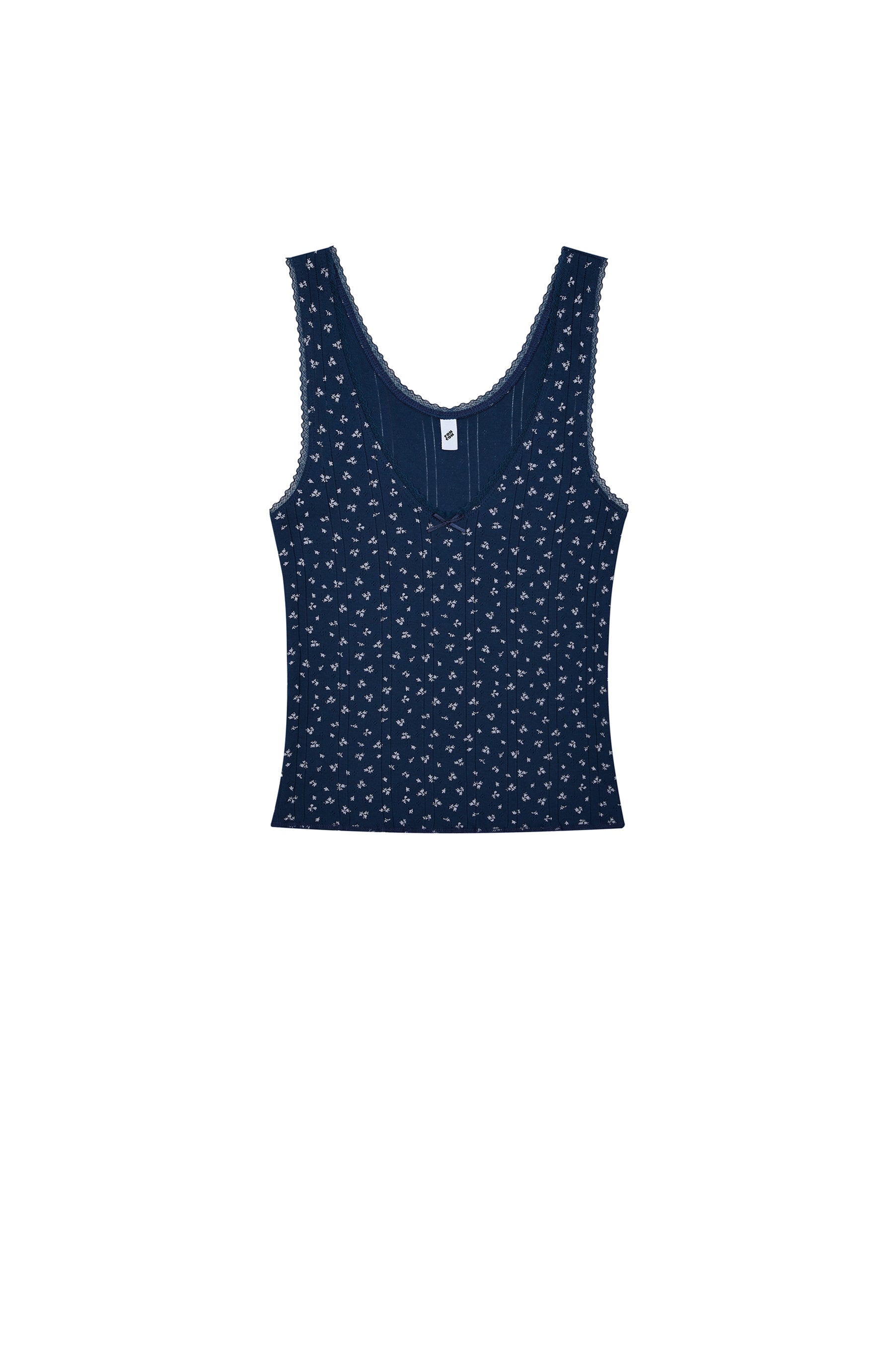 Your favourite childhood vest, reimagined. Featuring a scoop neckline & slightly cropped body, sitting just below the belly button. Trimmed with our signature French Lace & finished with a baby, centre-front bow.