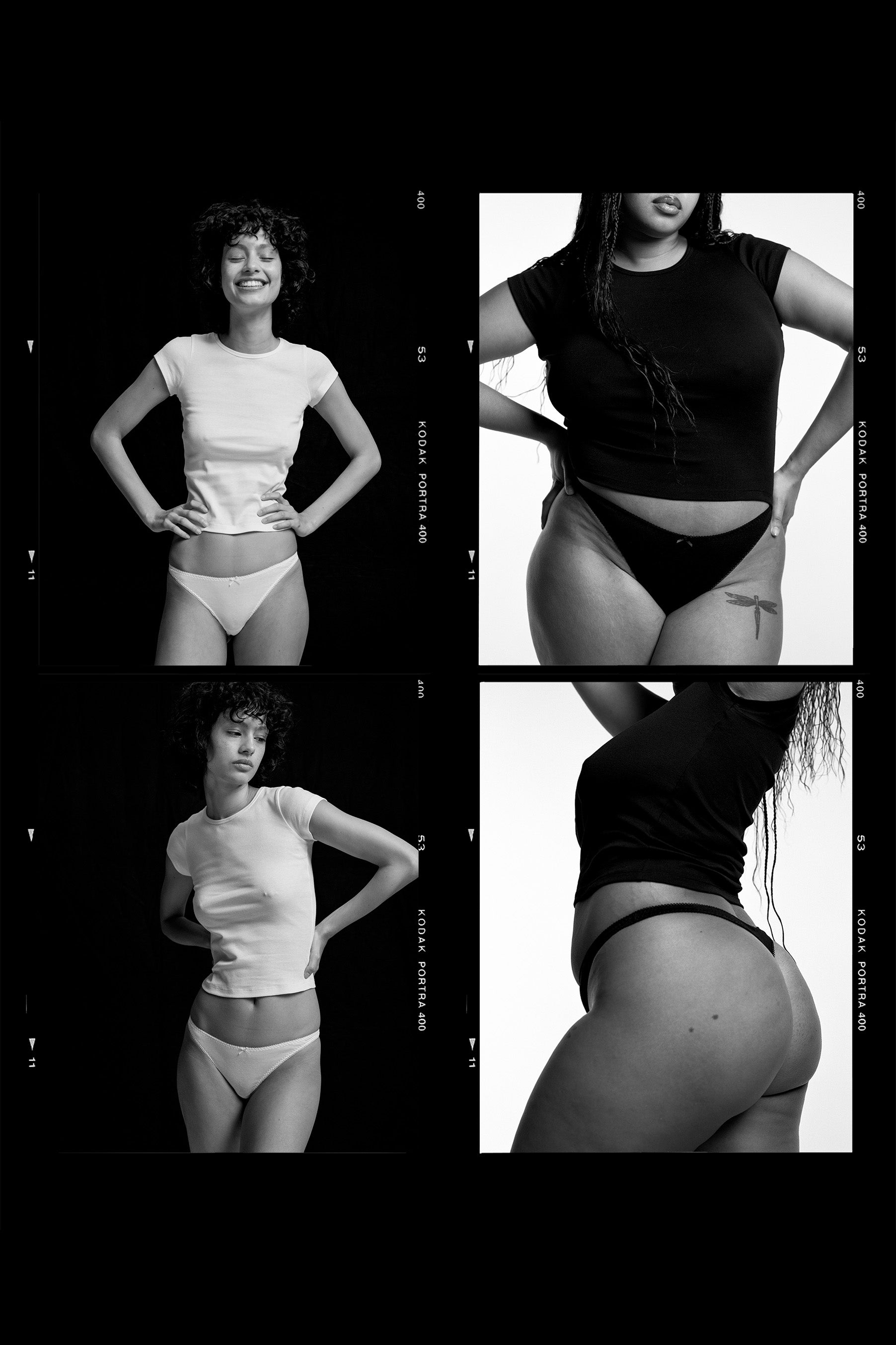 In order of appearance: Lilou wears The Thong in XS. Sylvie wears XL.