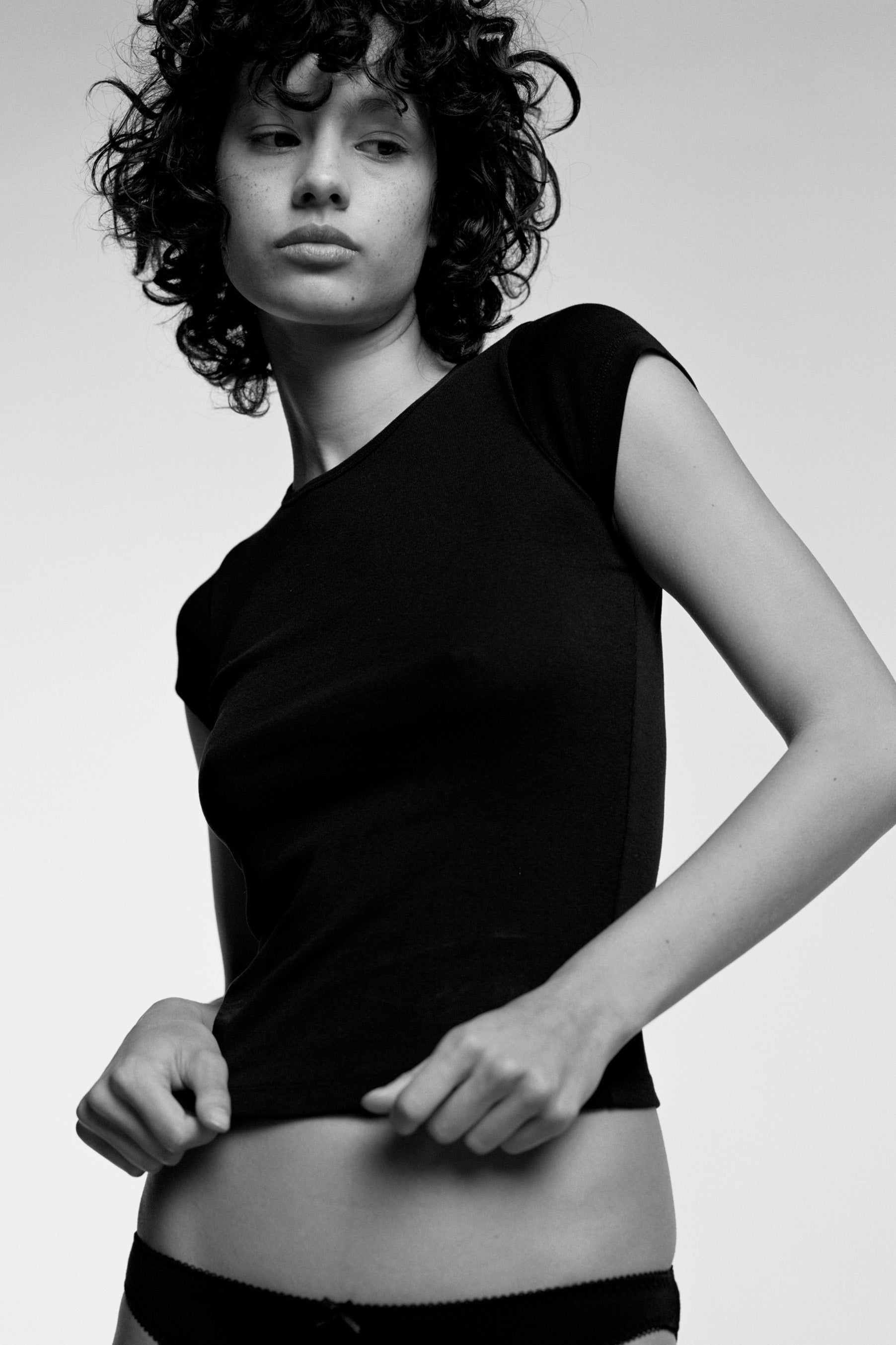 Quality you can feel. Featuring a slightly cropped body, crew neckline & perfectly capped sleeves.