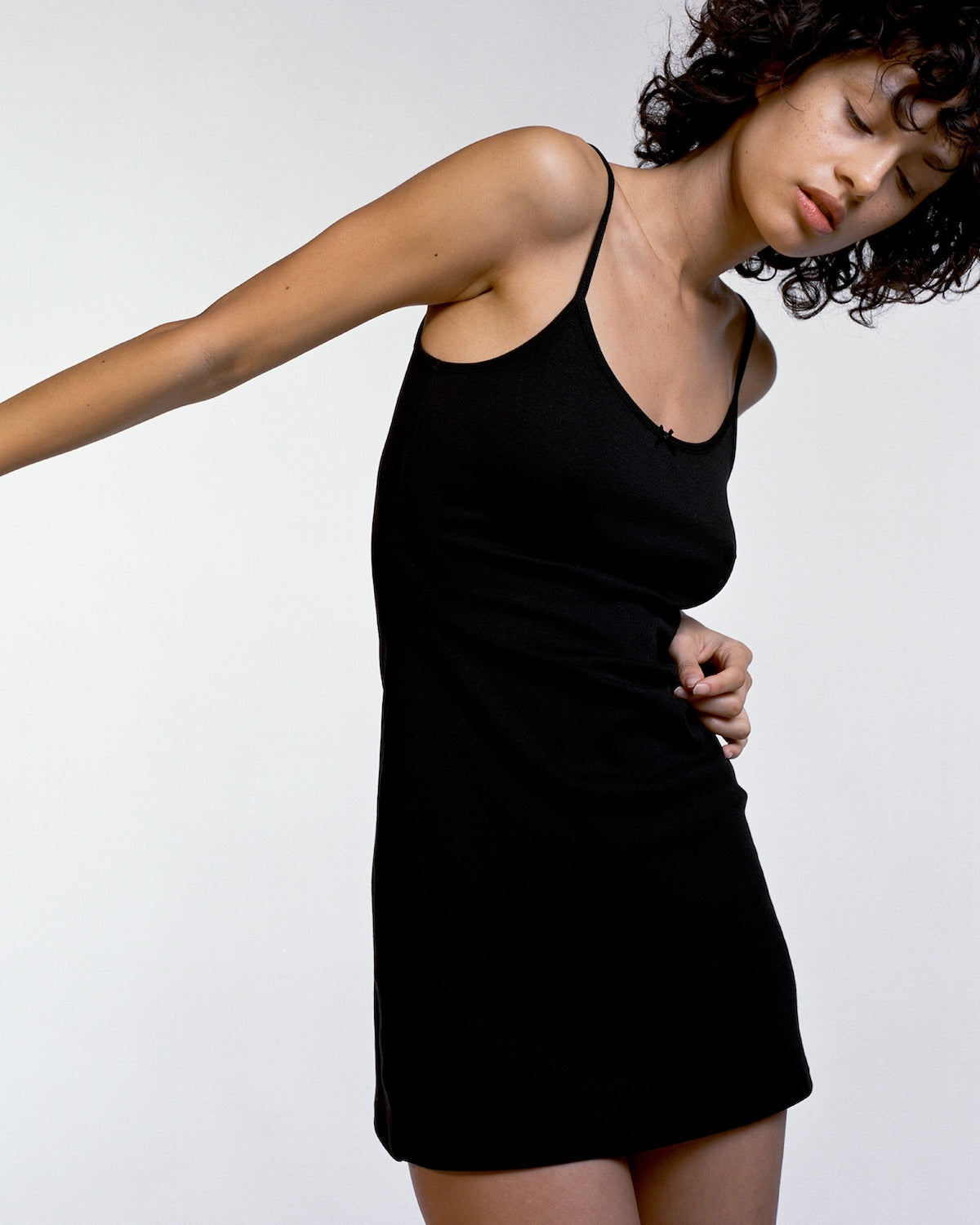 The perfect day-to-day mini dress inspired by 90’s icons & the days you don’t have time to change. Featuring a subtle A-line silhouette, mini length & finished with a center-front baby bow à la Cou Cou.